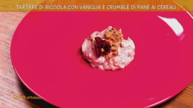 Tartare di ricciola con vaniglia e crumble di pane a i cereali