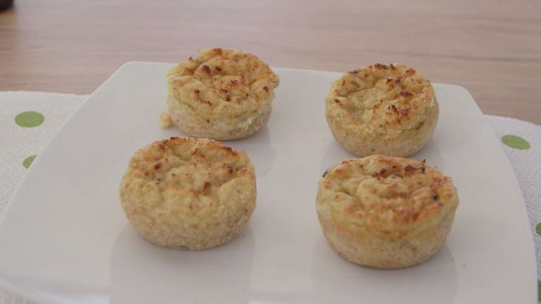 Anna Moroni prepara degli squisiti tortini di patate con baccalà.