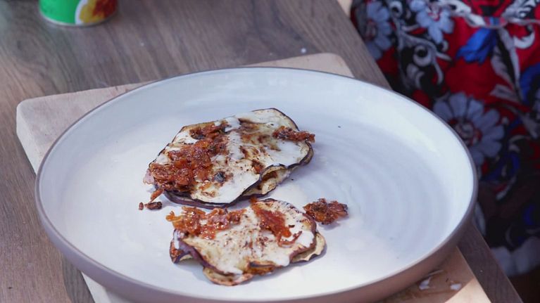 Melanzane con ragù alla bolognese e fonduta di squacquerone