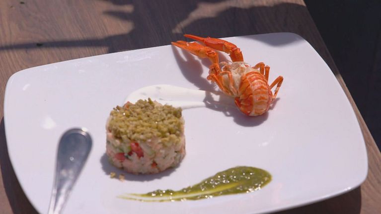 Carne bovina battuta al coltello con zucchine al basilico