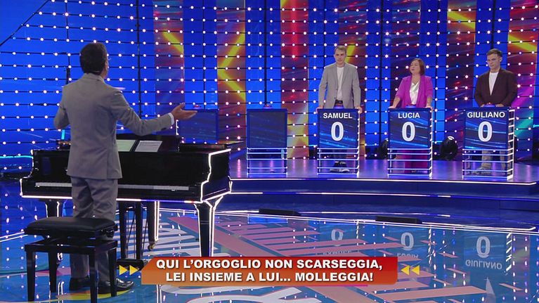 Simona, Maria e Giuliano si sfidano nella prova Asta Musicale di questa puntata.