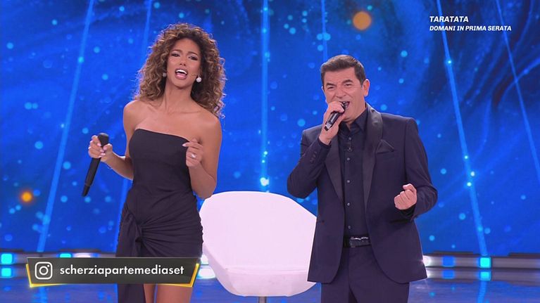 Max Giusti e Samira si esibiscono sulle note del brano "Felicità"