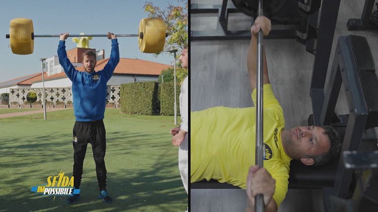 Stefano Corti e Marco Maddaloni, prima di affrontarsi nelle sfide, si allenano con l'aiuto di due personal trainer al Consorzio Grana Padano.