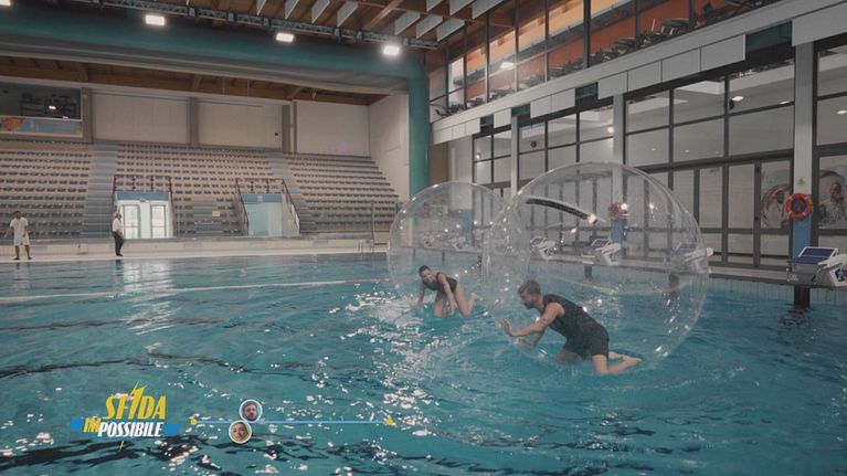 Stefano Corti affronta Elisa Di Francisca nella prima sfida: la corsa in acqua.