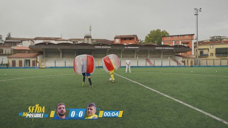 Stefano Corti e Marco Maddaloni si affrontano nella prima sfida: una partita di bubble football.
