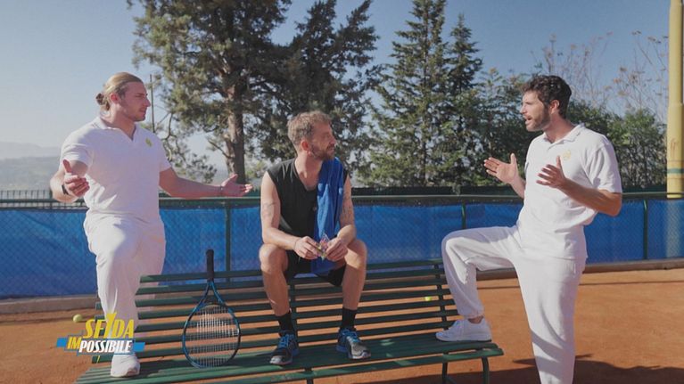 Stefano Corti si prepara alla sfida finale contro Francesca Schiavone gustando uno snack Grana Padano.