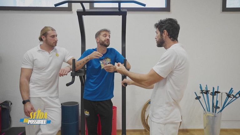 Stefano Corti si prepara alla sfida finale contro Valentina Vezzali gustando uno snack Grana Padano.