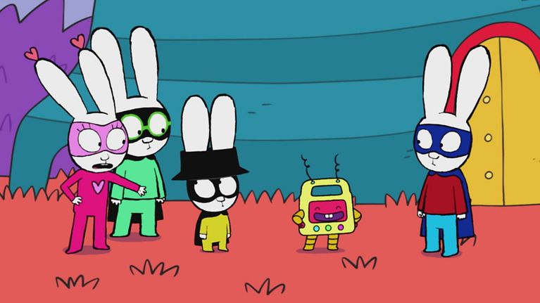 Simone è un coniglietto pieno di energia, dinamico, creativo e birichino, gli piace credere di essere un supereroe mascherandosi da Superconiglio! Di fronte a una difficoltà o a una paura, torna spesso ad essere un piccolo coniglio. E non si vergogna di confidarsi con i suoi genitori e di chiedere loro un consiglio e la loro protezione.