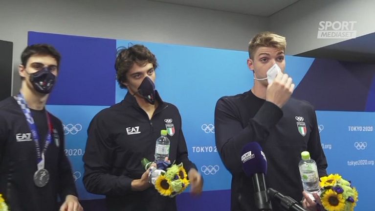 Gli azzurri della 4x100 sl dopo l'argento in vasca