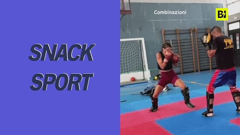 La showgirl, in vacanza ad Alghero con la figlia, alle prese con una sessione di kickboxing