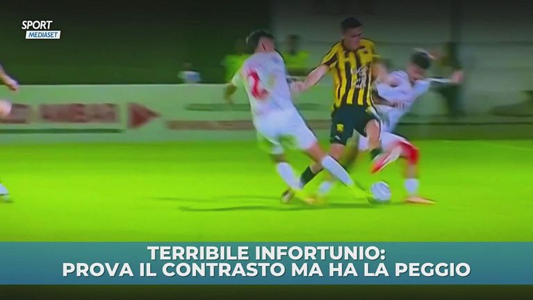 Terribile infortunio dopo un contrasto durissimo, immagini sensibili.