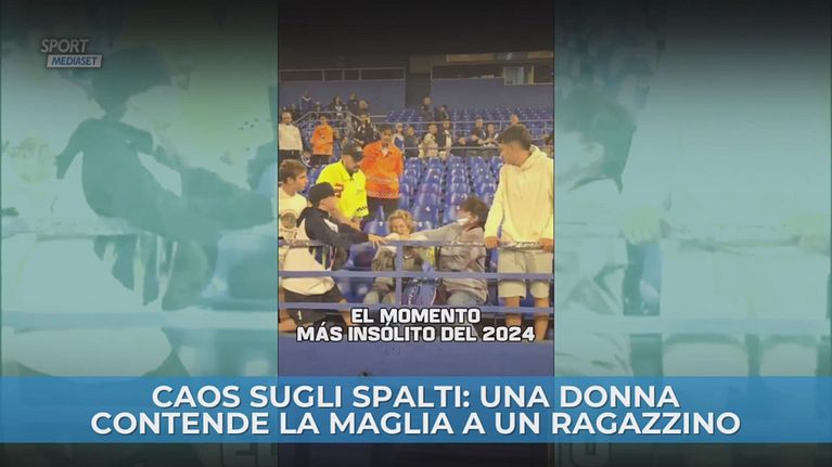 Caos sugli spalti: una donna contende la maglia a un ragazzino