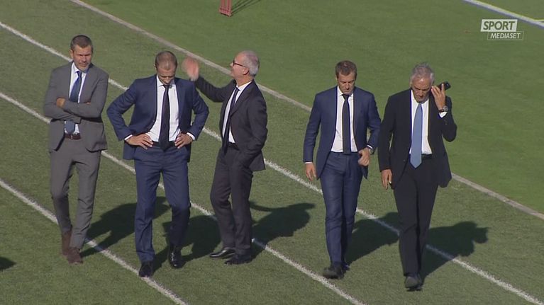 Il presidente della Uefa è stato ricevuto dal numero uno della Figc Gravina e ha salutato il ct azzurro Spalletti