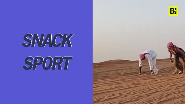 La presentatrice e il campione olimpico "gareggiano" nel deserto di Dubai.