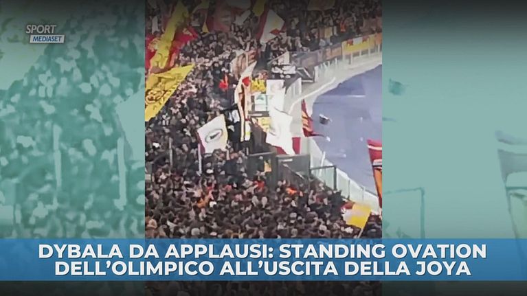 Tutto lo stadio Olimpico in piedi per tributare il proprio campione argentino dopo la fondamentale doppietta contro il Porto