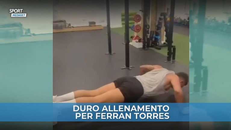 Il giocatore del Barcellona e appena diventato campione d'Europa con la Spagna impegnato in una dura sessione di allenamento in palestra tra le flessioni e l'utilizzo di attrezzi