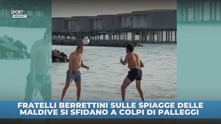 Sulle spiagge delle Maldive i due danno il via ad una sfida di palleggi