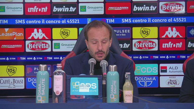 Il tecnico dei rossoblù dopo il successo sul Verona