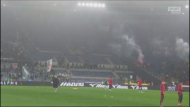 Le immagini dei lanci di fumogeni tra Curva Sud e Tribuna Tevere