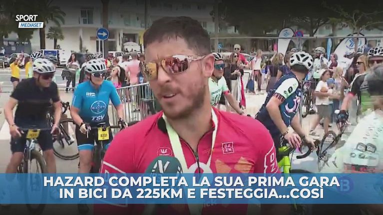 Dopo una gara in bici di 225km, l'ex Chelsea e Real Madrid Eden Hazard festeggia così