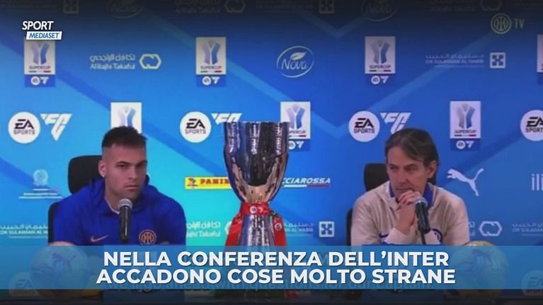 Durante la conferenza dell'Inter prima della finale di Supercoppa italiana, Lautaro Martinez e Simone Inzaghi sono stati sorpresi da un rumore improvviso. Virali la faccia del capitano nerazzurro e la reazione di Inzaghi.