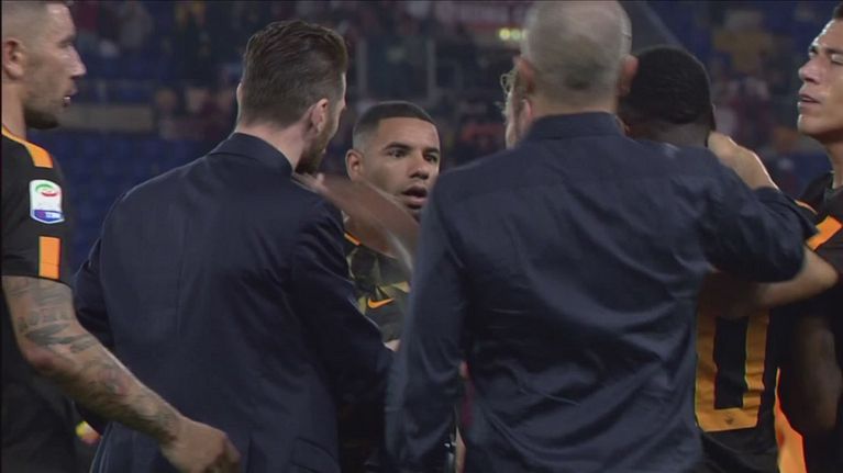 I due brasiliani divisi dai compagni alla fine di Roma-Verona