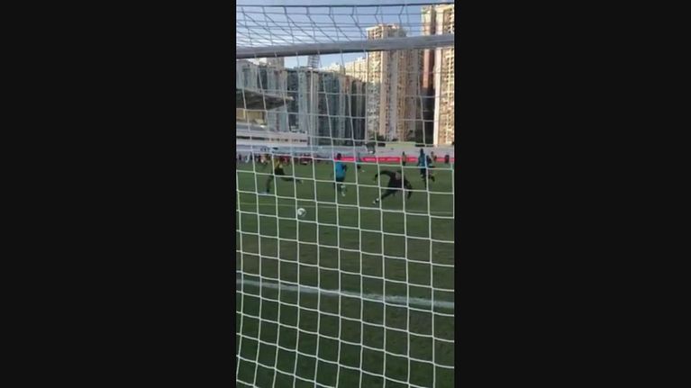 Il gol dell'attaccante in allenamento mostrato in slow-motion