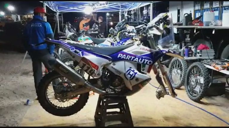 Al lavoro per mettere a punto la moto per la prossima tappa