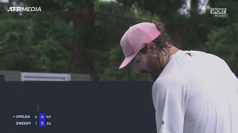 Siparietto comico a Brisbane: Sweeney (170 cm) usa una sedia per abbracciare il gigante Reilly Opelka dopo la sconfitta