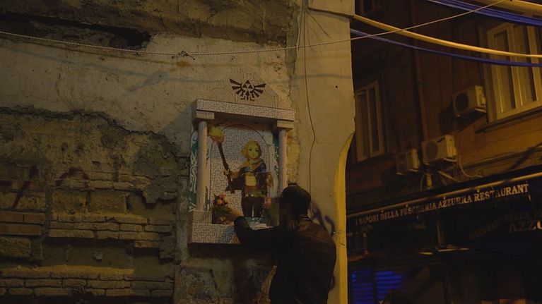Tre edicole votive dedicate al nuovo titolo Nintendo appaiono per le strade del capoluogo campano