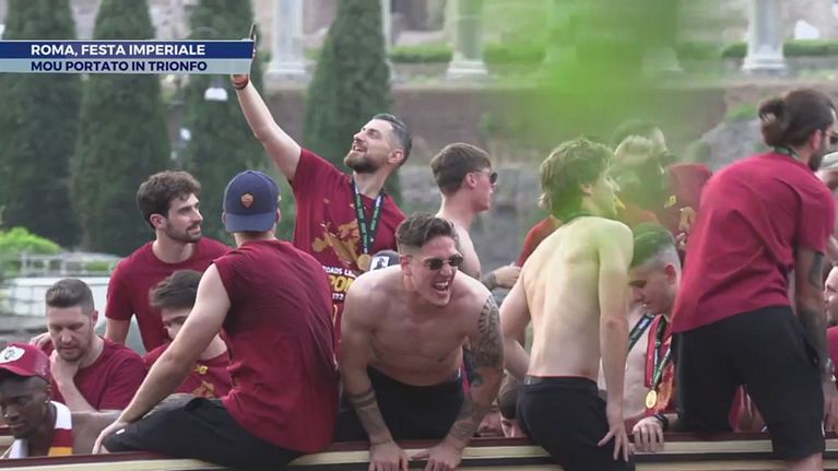 Roma, festa imperiale: Mou portato in trionfo
