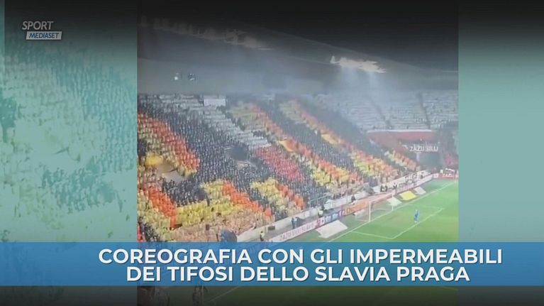 I tifosi dello Slavia Praga prima e durante il match di Campionato contro il Karvina hanno dato vita a una coreografia permanente fatta di quasi 21000 impermeabili