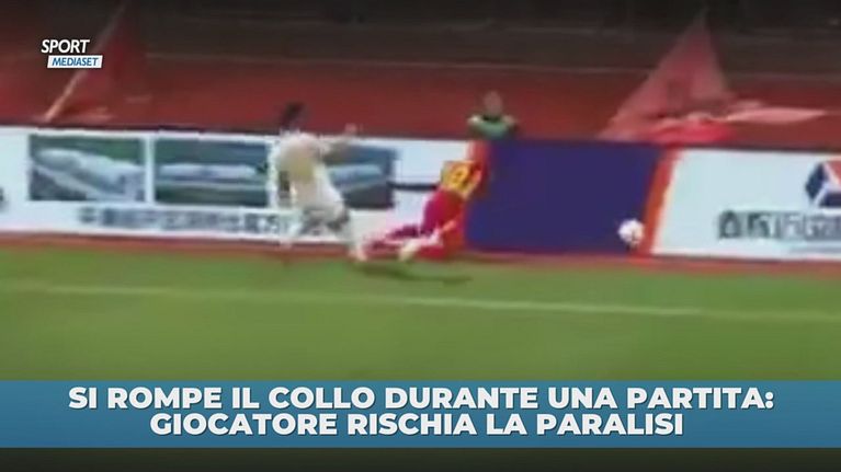 Asamoah, giocatore togolese del Guangxi Pingguo, è finito contro un cartellone pubblicitario in una partita del campionato cinese