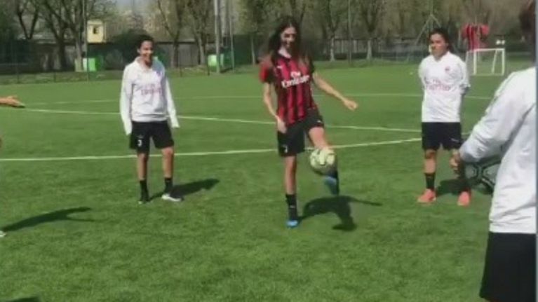 Allenamento, palleggi e gran gol di sinistro: la showgirl dimostra di saperci fare