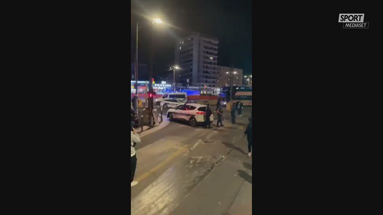 Tifosi Marsiglia all'assalto al pullman del Lione