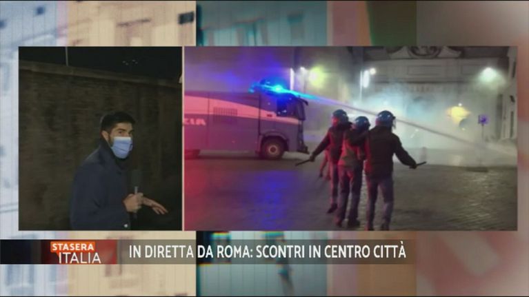 In diretta da Roma: scontri in centro città, avvenuti nel momento in cui il premier Conte stava illustrando il decreto "Ristori" per i commercianti.