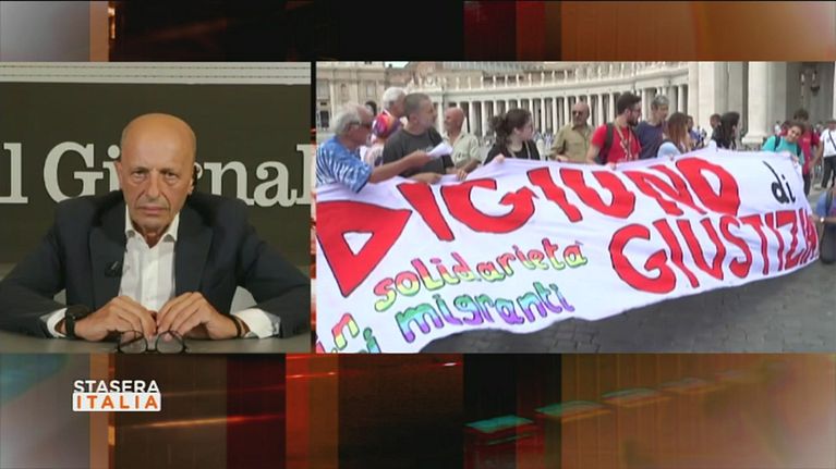 Sacerdoti, fedeli, scout, in piazza San Pietro contro le scelte del governo in merito alle politiche migratorie.