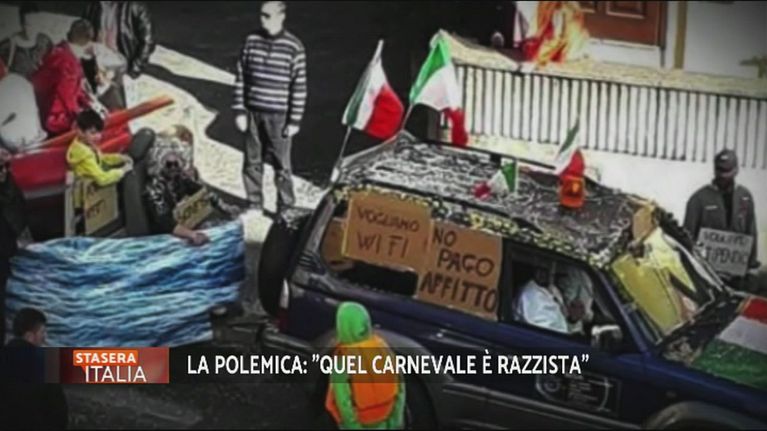 Formello, il carro della vergogna, così è stato definito, il carro che ha sfilato aveva la dìforma di un barcone con bambini ed adulti travestiti da migranti con tanto di cartelli "non pago affiti".