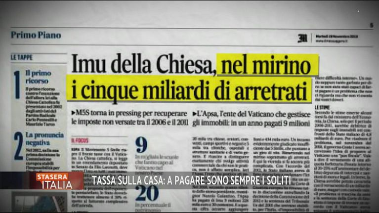 Il M5S ha proposto, con un emendamento, di far pagare l'Imu agli alloggi usati a fini commerciali appartenenti alla Chiesa.