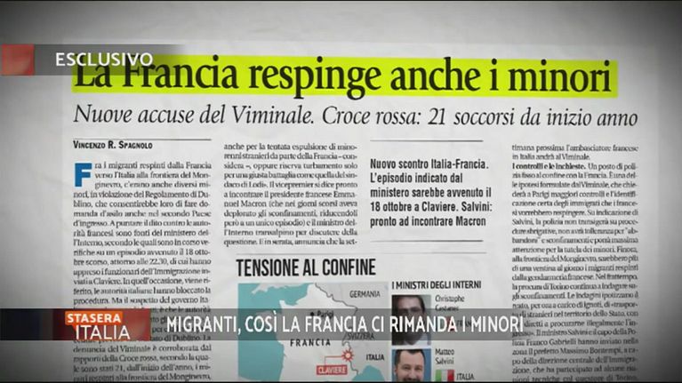 Il Ministro dell'interno Matteo Salvini denuncia la presunta violazione della Francia della clausole del trattato di Dublino.