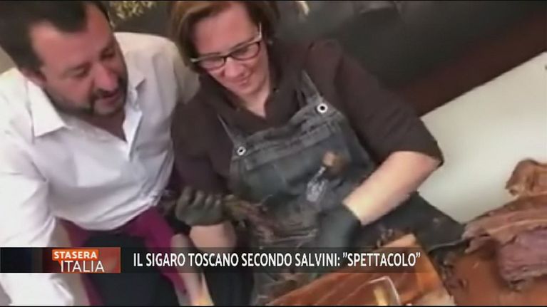 Il vice premier Salvini assiste alla realizzazione di un sigaro toscano.