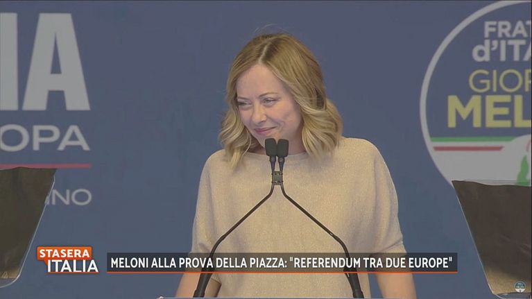 Giorgia Meloni sceglie Piazza del Popolo, a Roma, per l'ultimo comizio ad una settimana dal voto delle Elezioni Europee.