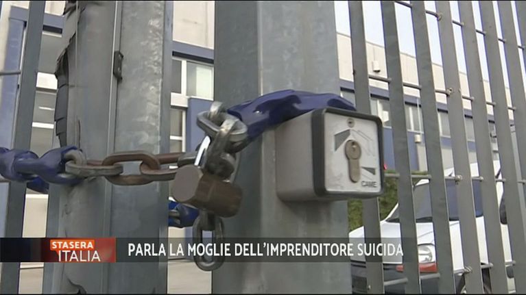 La moglie dell'imprenditore appena suicidatosi, Emanuele Vezzuli, per il fallimento della sua azienda.