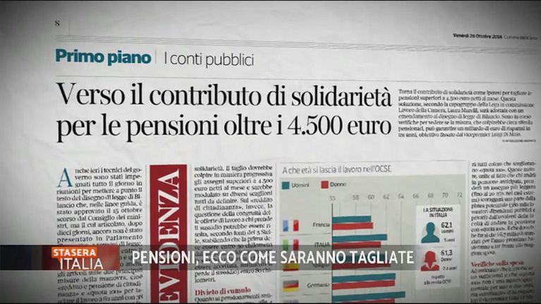 Si fa strada l'ipotesi del contributo di solidarietà a tre aliquote per le pensioni superiori a 4.500 euro netti al mese.