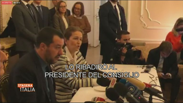 Un frammento della conferenza stampa di Salvini a Varsavia sul tema dei 49 migranti sbarcati a Malta.