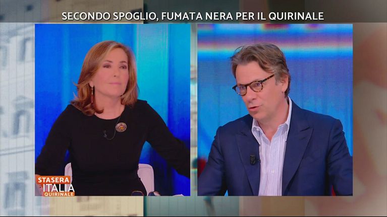 Barbara Palombelli conduce Stasera Italia Quirinale, dedicato alla seconda giornata di votazioni per l'elezione del Presidente della Repubblica conclusasi con fumata nera