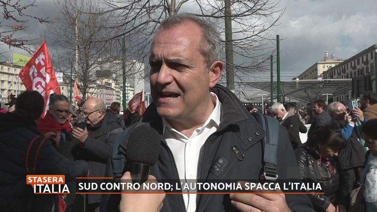 Parte da Napoli, città simbolo del sud Italia, la protesta contro l'autonomia differenziata delle Regioni, una battaglia storica della Lega.