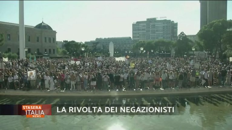 Il popolo dei negazionisti scende in piazza e lancia la protesta contro l'uso delle mascherine.