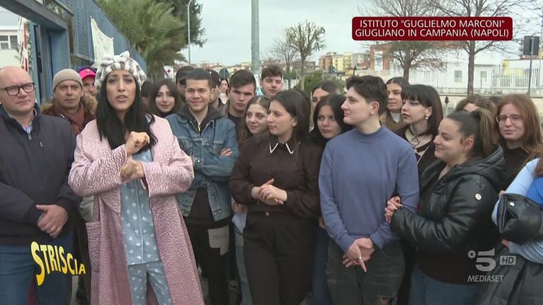 Angelica Massera è nella località in provincia di Napoli per incontrare una rappresentanza dei 1400 studenti dell'Istituto Guglielmo Marconi che sono distribuiti in quattro altre scuole della città perché la loro struttura è inagibile. Alcuni di loro sono costretti a fare lezione al pomeriggio, anche la sera. L'inviata si presenta in Comune in pigiama per chiedere informazioni.