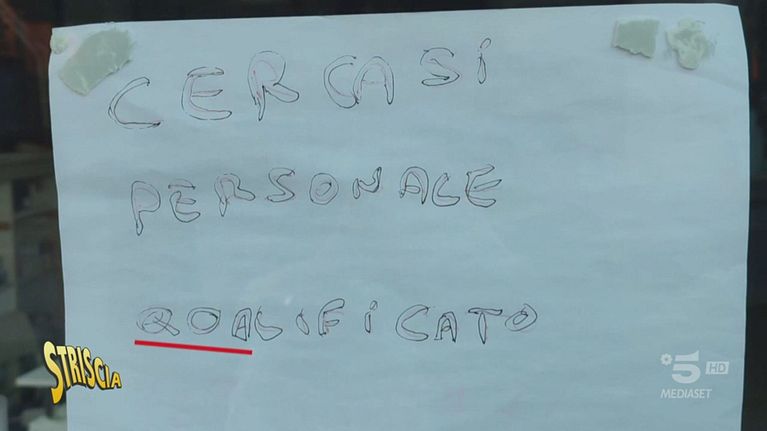 A Striscia il cartellone «cercasi personale qoalificato»
